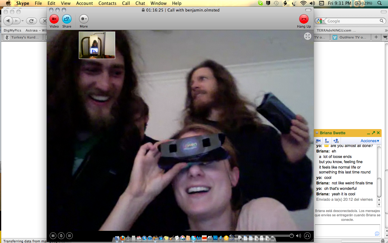 Perú in 3D was recently shown at concurrent parties connecting Stanford, California and Buenos Aires, Argentina via projected online stereographs and live video on skype. Some reflections on the event can be found below, and we took some amazing screenshots. We even made some stereographs with the video conference computer :)
